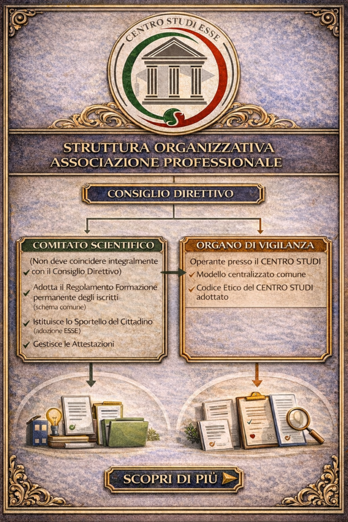 Ogni Associazione Professionale aggregata deve adottare una struttura organizzativa conforme alla Legge 4/2013 e alle Linee Guida MIMIT.